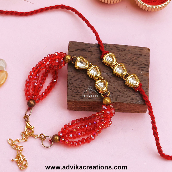 Rakhi Set with Red Crystal Beads/ACI3427