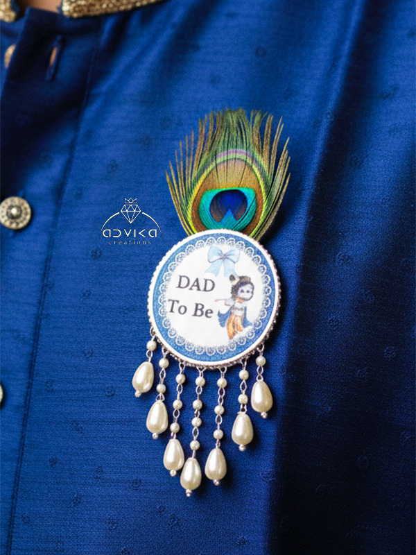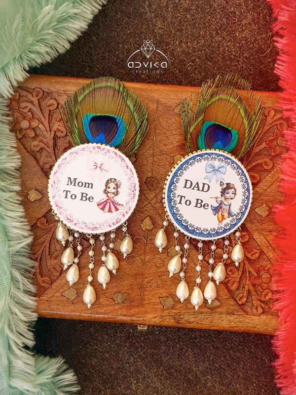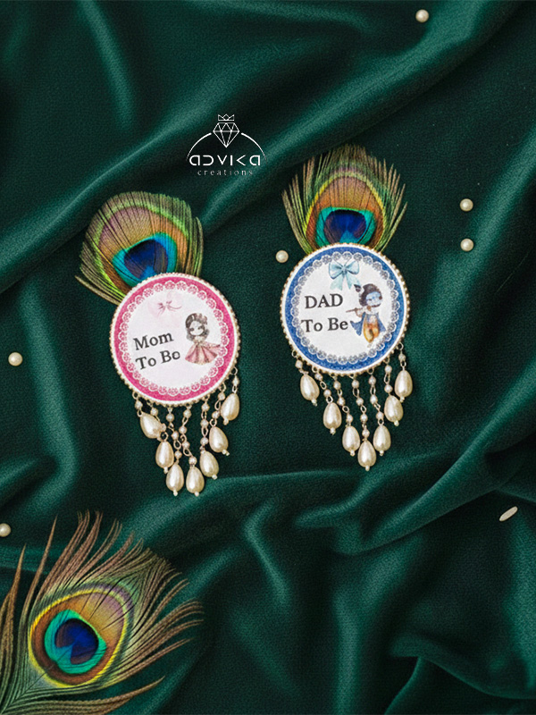 Celebrate love, blessings, and divine grace with this beautifully handcrafted Mom–Dad Baby Shower Brooch, designed in an adorable Radha Krishna kid print. Thoughtfully curated for baby shower and godh bharai ceremonies, this brooch blends traditional symbolism with delicate detailing, making it a meaningful accessory for the parents-to-be.