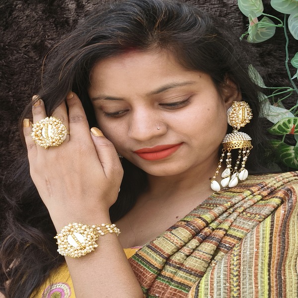 Golden Kawri Shell Bracelet Earring Set/ACI2460