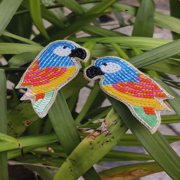 The design may include accents of other colors like blue, golden and red to highlight the parrot’s natural beauty, creating a bold contrast against the deep blue base. The parrot motif adds a tropical, exotic flair to these earrings, making them the perfect statement piece for festivals, holidays, or any event where you want to stand out and show off your love for nature.