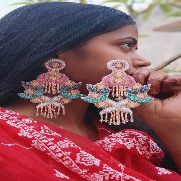 Crafted with a collection of beautifully arranged pastel-colored beads in shades of soft pinks, blues, mint greens, lavender, and peaches, these earrings create a gentle, soothing look that pairs effortlessly with a variety of outfits.