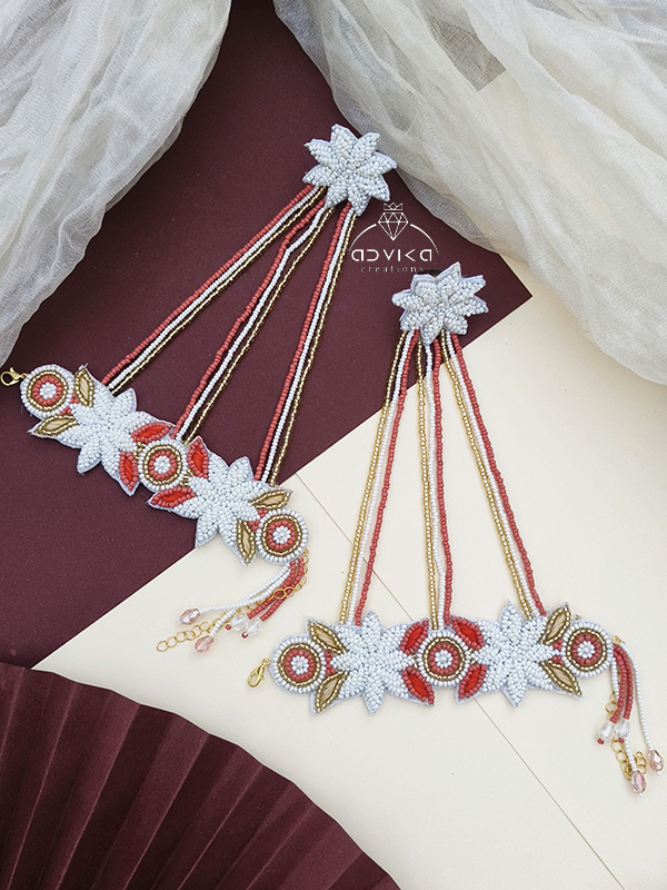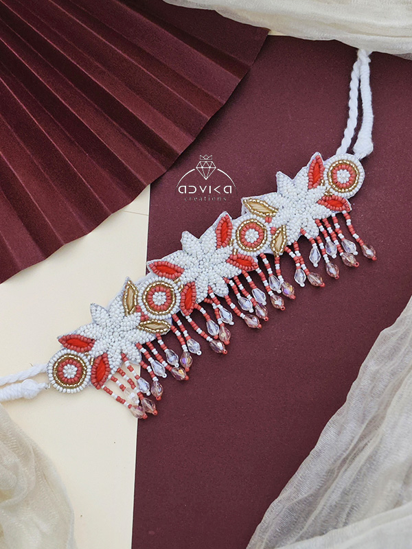 Step into the spotlight with this Handcrafted Beaded Floral Jewellery Set, an exquisite choice for weddings, Mehendi, or Haldi ceremonies. The set stands out for its unique use of beads to create lifelike floral textures, offering a modern yet deeply traditional alternative to metal jewellery.