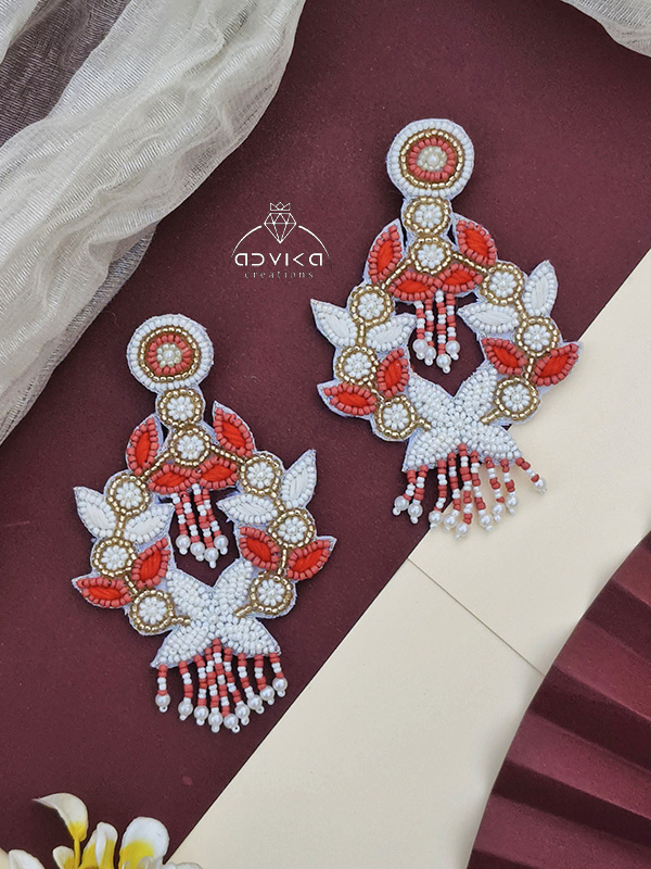 Elegant Crimson & White Beaded Floral Jewellery Set