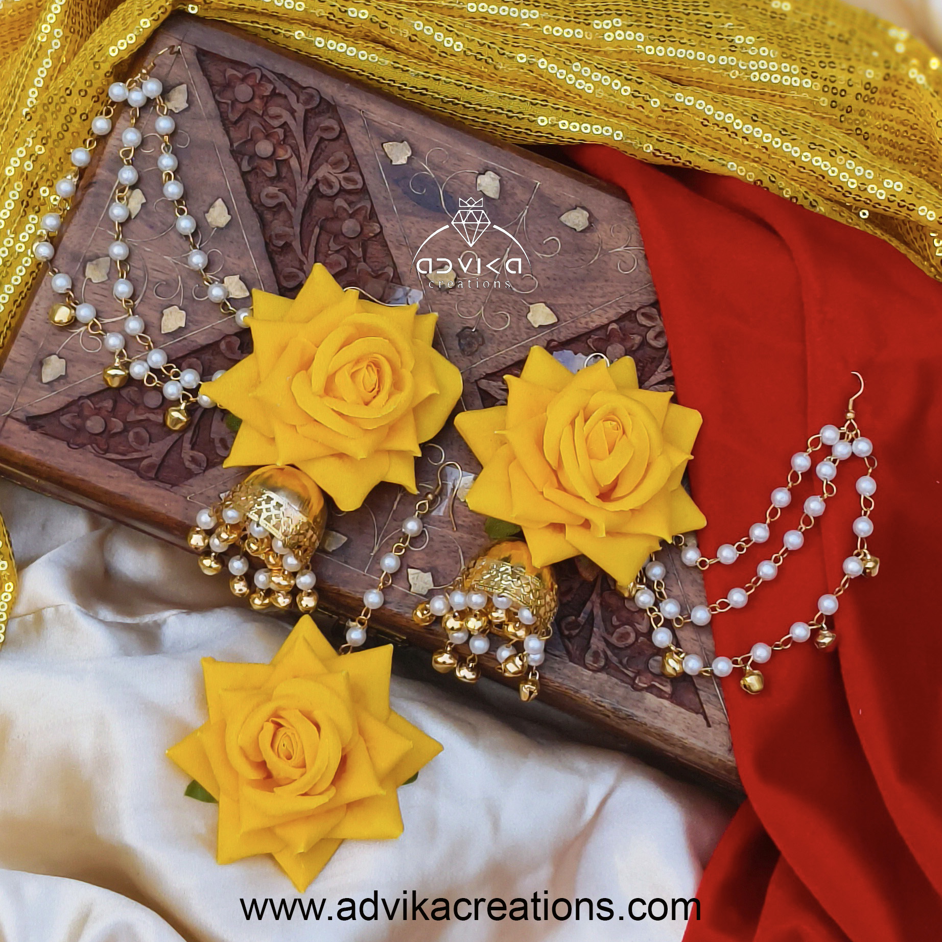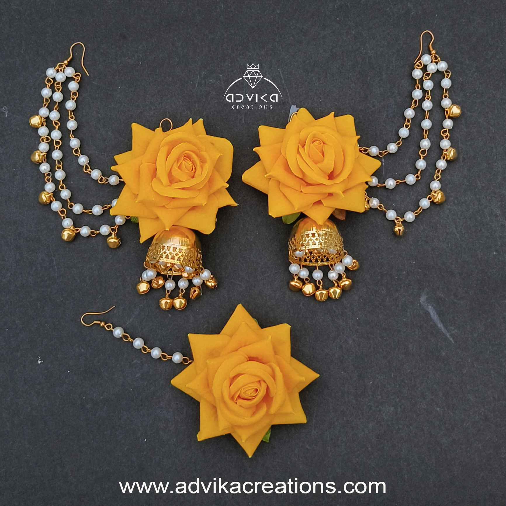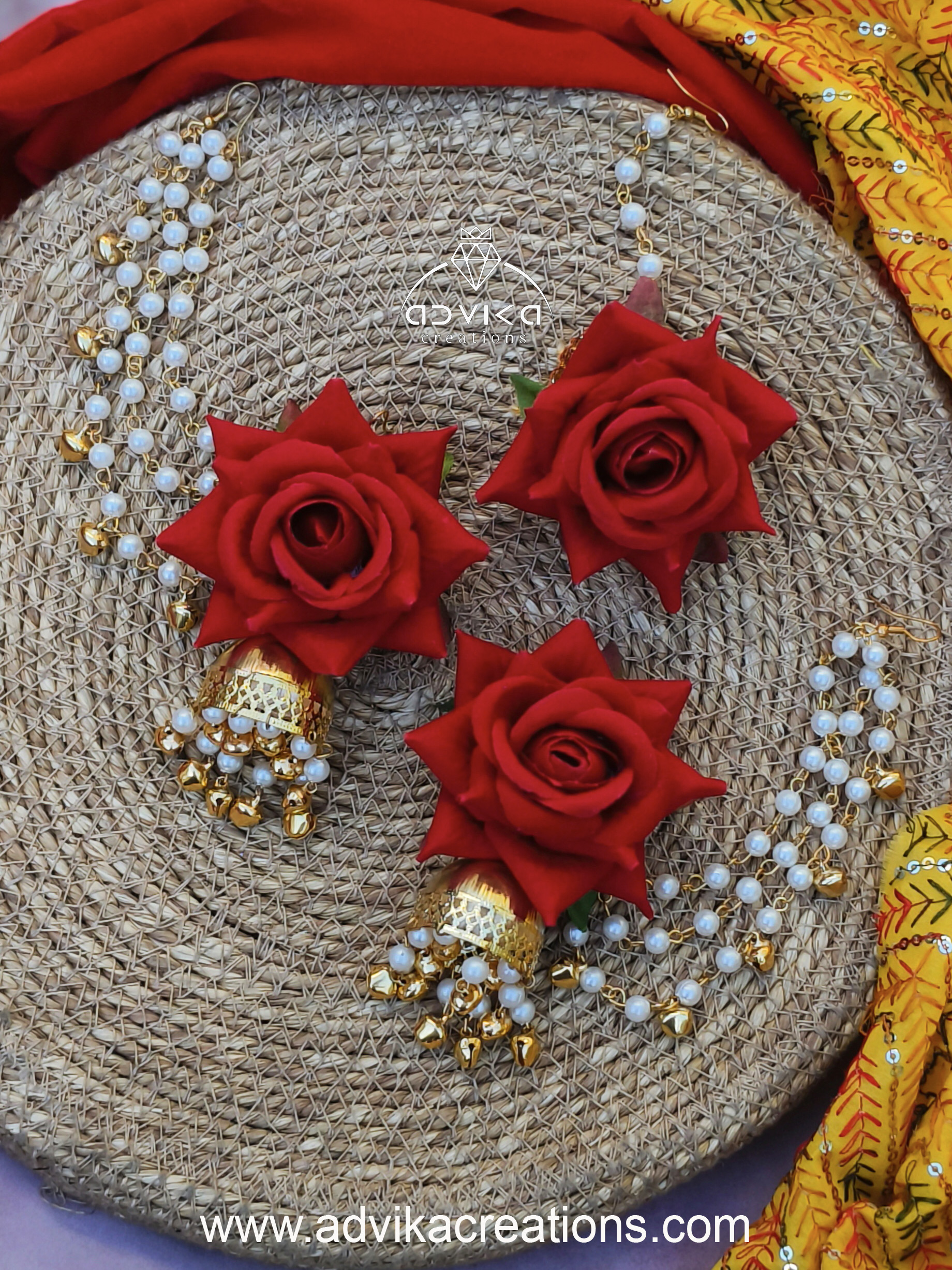 Rose Jhumka Earrings with Maangtika/ACI3683