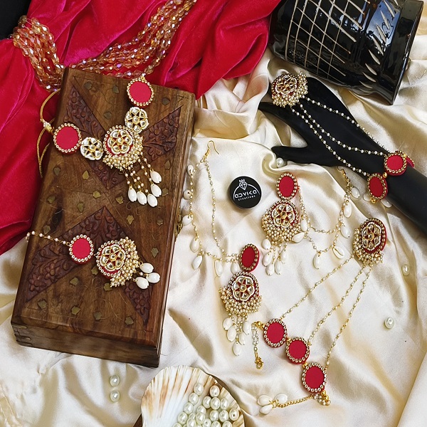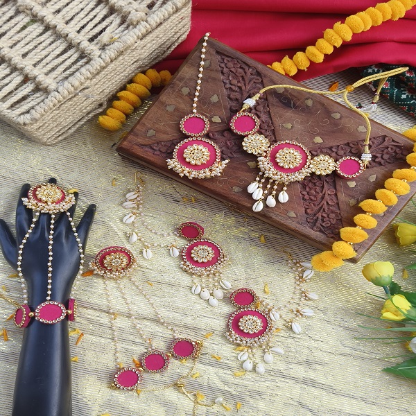 Fabric Handmade Necklace Set for Haldi & other occasion – Necklace, Earrings, Tikka & Haathphool