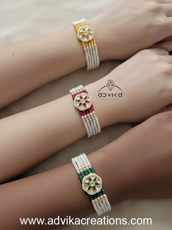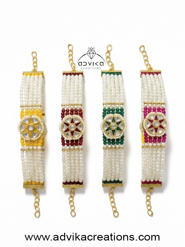 The central kundan charm enhances the overall design with its royal shine, giving the bracelet a luxurious finish. Lightweight and comfortable to wear, this bracelet is ideal for weddings, haldi–mehndi functions, festive occasions, parties, or as a stylish return favor. It can be worn solo for a minimal look or stacked with matching bangles and bracelets for a richer statement.