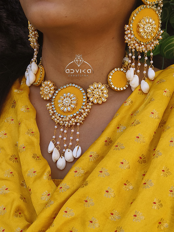 Fabric Handmade Necklace Set for Haldi and other occasion