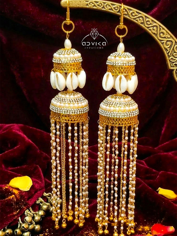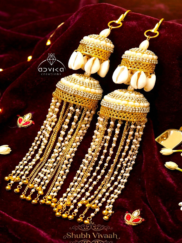 Enhance your bridal look with this stunning Golden Bridal Kaleera, beautifully handcrafted with a rich combination of traditional and modern elements. This elegant kaleera features shimmering golden ghunghroo that create a soft, charming sound with every movement, adding a festive touch to your bridal attire. The design is adorned with delicate pearl link chains and sparkling stone chains that give the kaleera a graceful and luxurious appeal.