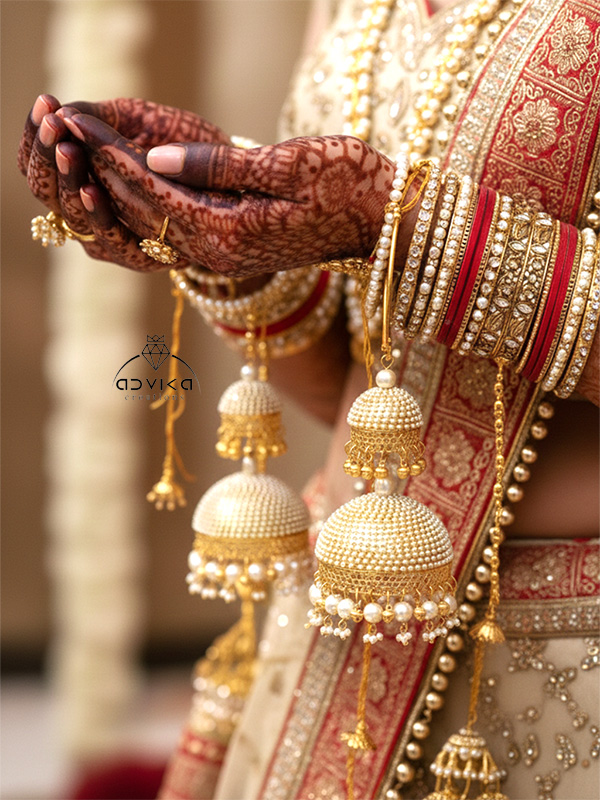 Make your bridal entry unforgettable with this exquisite golden kaleera featuring elegant ghunghroo charms and lustrous pearl bead embellishments. The rich golden finish enhances the traditional bridal look, while the beautifully arranged pearls provide a graceful contrast. Perfect for weddings, engagements, haldi, and mehendi ceremonies, this kaleera complements both traditional and modern bridal outfits effortlessly.