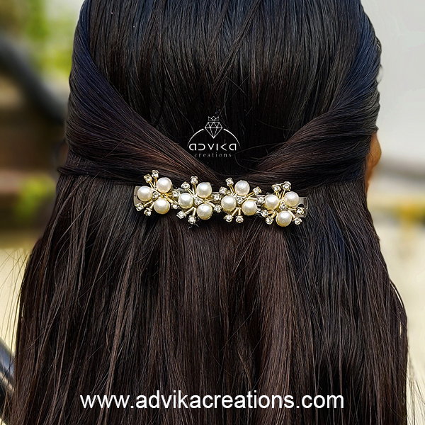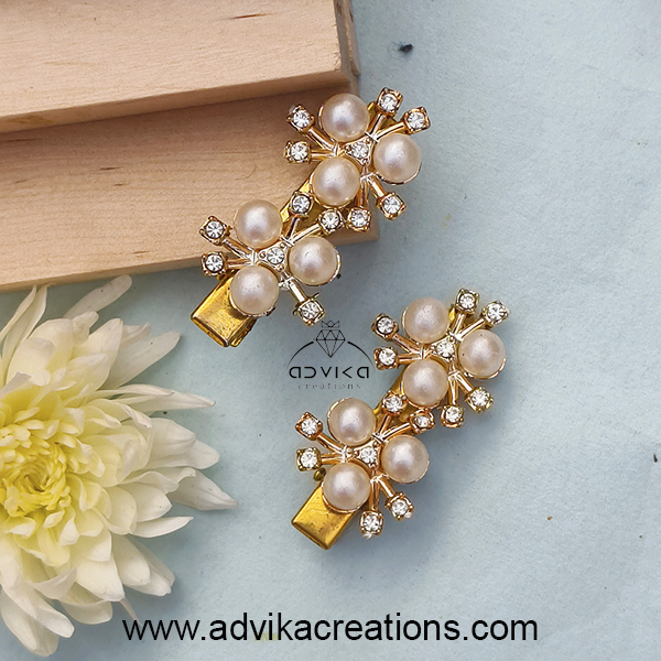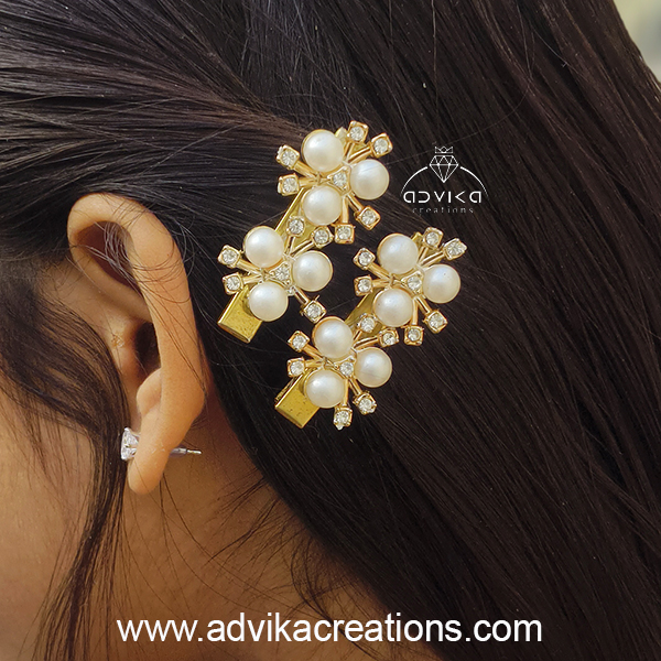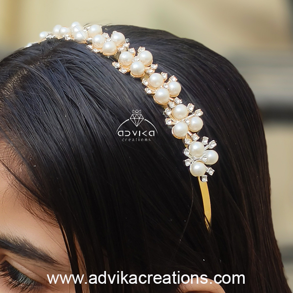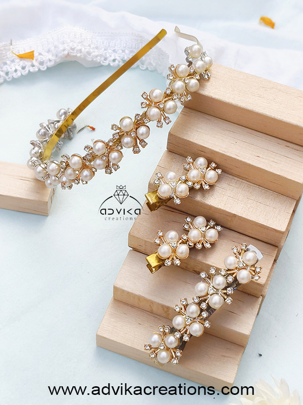 Add a touch of luxury to your hairstyle with our beautifully handcrafted Pearl & Stones Hairband paired with matching designer hair clips. This set is designed to bring effortless elegance to bridal looks, haldi–mehendi functions, party wear, and everyday styling.
