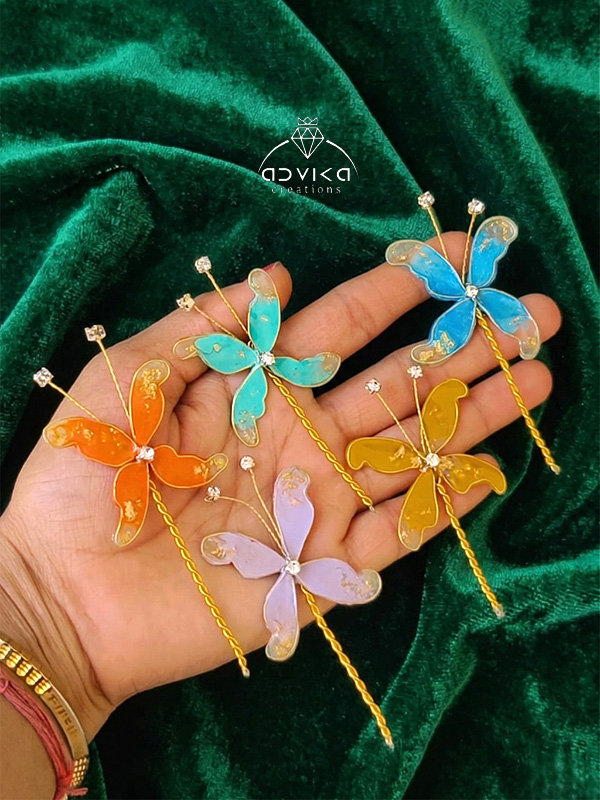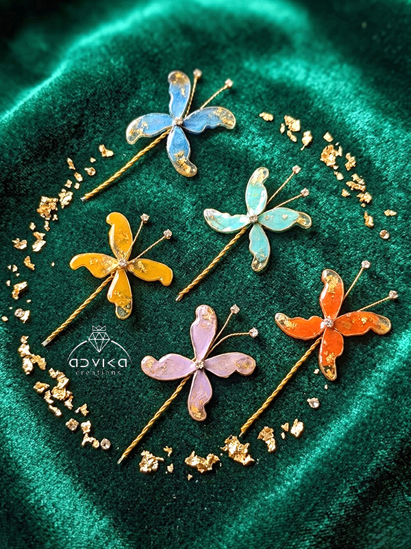 Add a playful and colorful charm to your hairstyle with this adorable set of 5 resin butterfly hairpins, designed to bring a fresh and trendy vibe to your look. Each pin features a beautifully crafted butterfly design in vibrant colors, made from high-quality resin for a glossy and eye-catching finish.