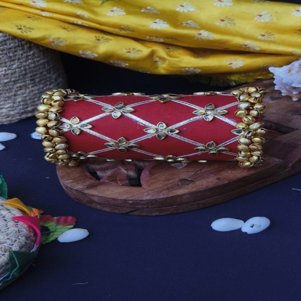 Handcrafted Navratri Red Handcuff with Ghoongroo and Beads/ACI2803