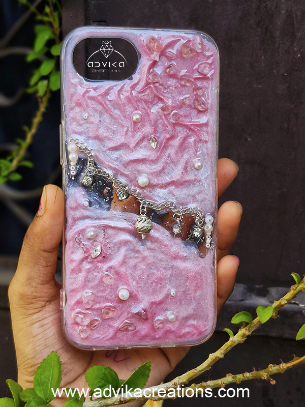 Give your phone a stunning makeover with our handmade customised mobile covers, beautifully designed using premium resin art, sparkling beads, pearls, charms, and your choice of name or initials. Each piece is thoughtfully created to match your personality, style, and colour preferences—making it not just a phone cover, but a piece of art you carry every day.