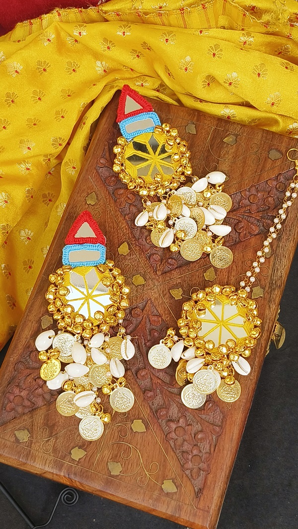Embroidered Mirror and Laxmi Coin Choker Set