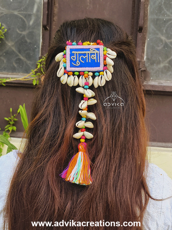 Handcrafted with Love: Each piece is uniquely embroidered by skilled artisans. Rich Blue Fabric Base: Adds depth and vibrance to your festive attire. Decorative Tassels & Kaudi Shells: Enhance the ethnic charm. Wooden Beads Accent: Adds a rustic and earthy touch. Lightweight & Comfortable: Perfect for long hours of wear during events. Multi-Occasion Accessory: Ideal for Navratri, Garba nights, weddings, Haldi, Mehendi, and festive gatherings.