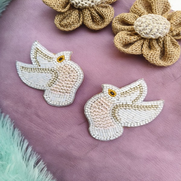 Beaded hairband with a flamingo bird design on silk fabric for women and girls
