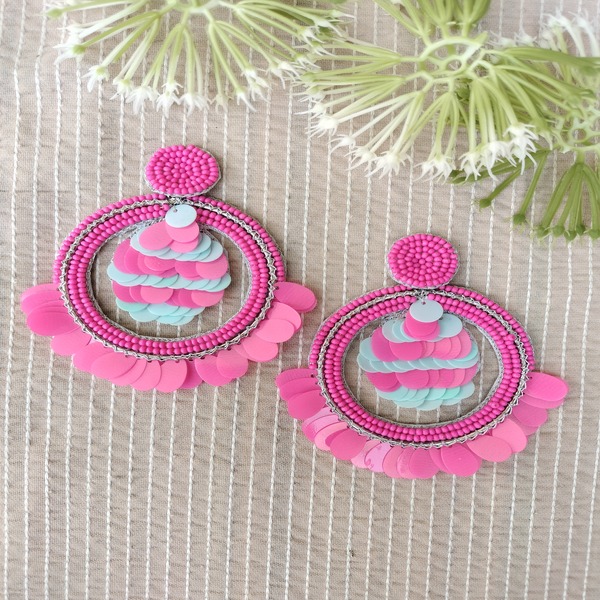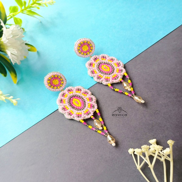 Baby Pink Beaded Earring For Women and Girls