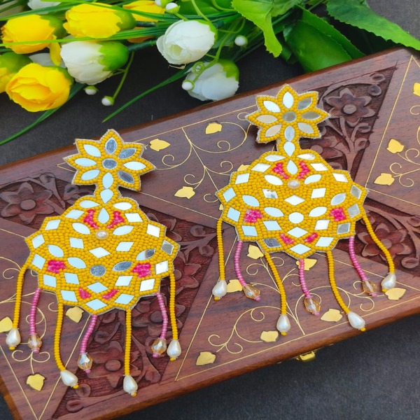 yellow beaded & mirror Handmade Earring with Latkan