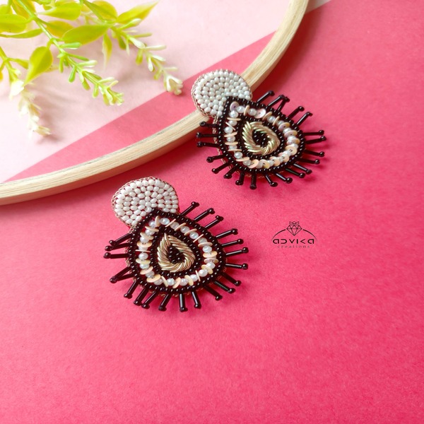 black&white Designer beaded Drop Earring