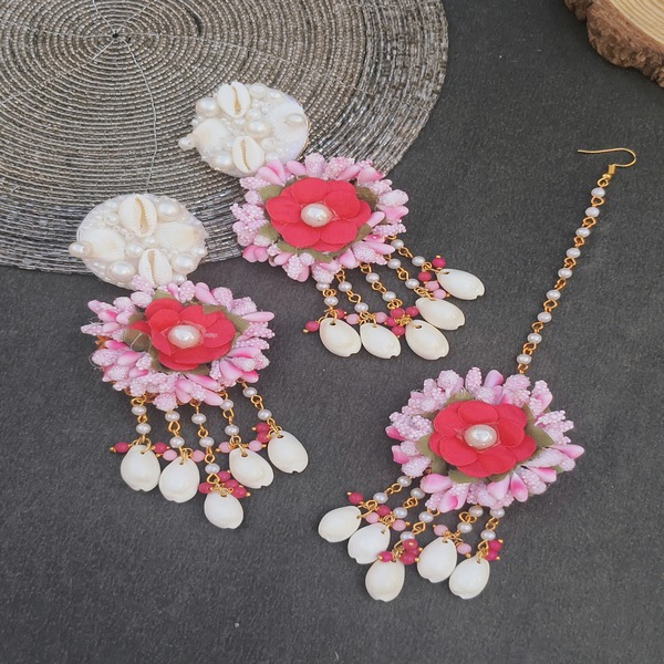 Cowrie Shell Mangtika And Earring for Haldi, Mehndi, baby shower, Set For Women And Girls