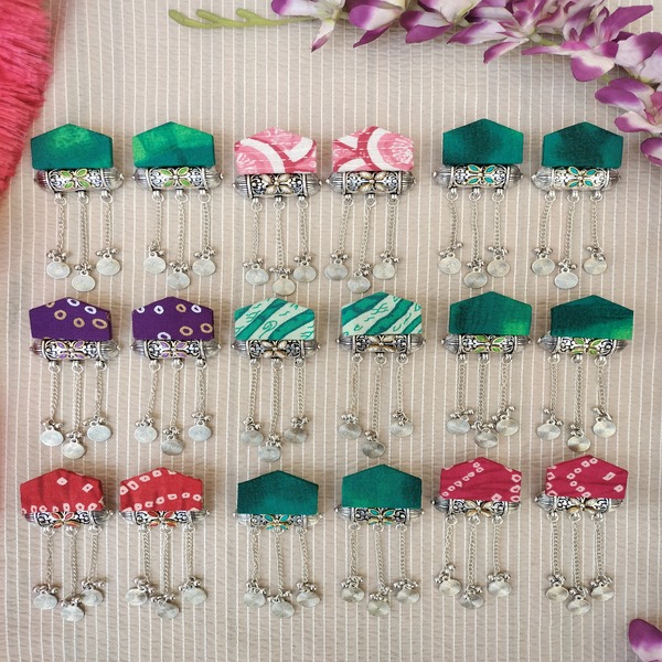Set of 10 Colorful Fabric Round Earrings with kundan design