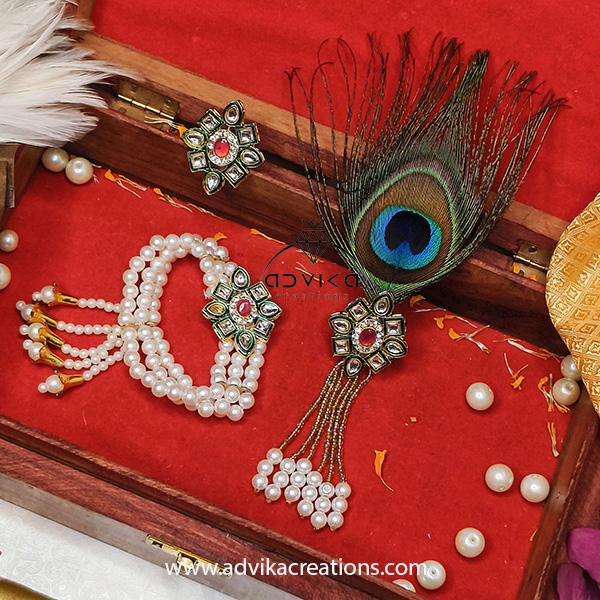 Set of Exquisite Pearl & Kundan Ring, Braclate and brooch
