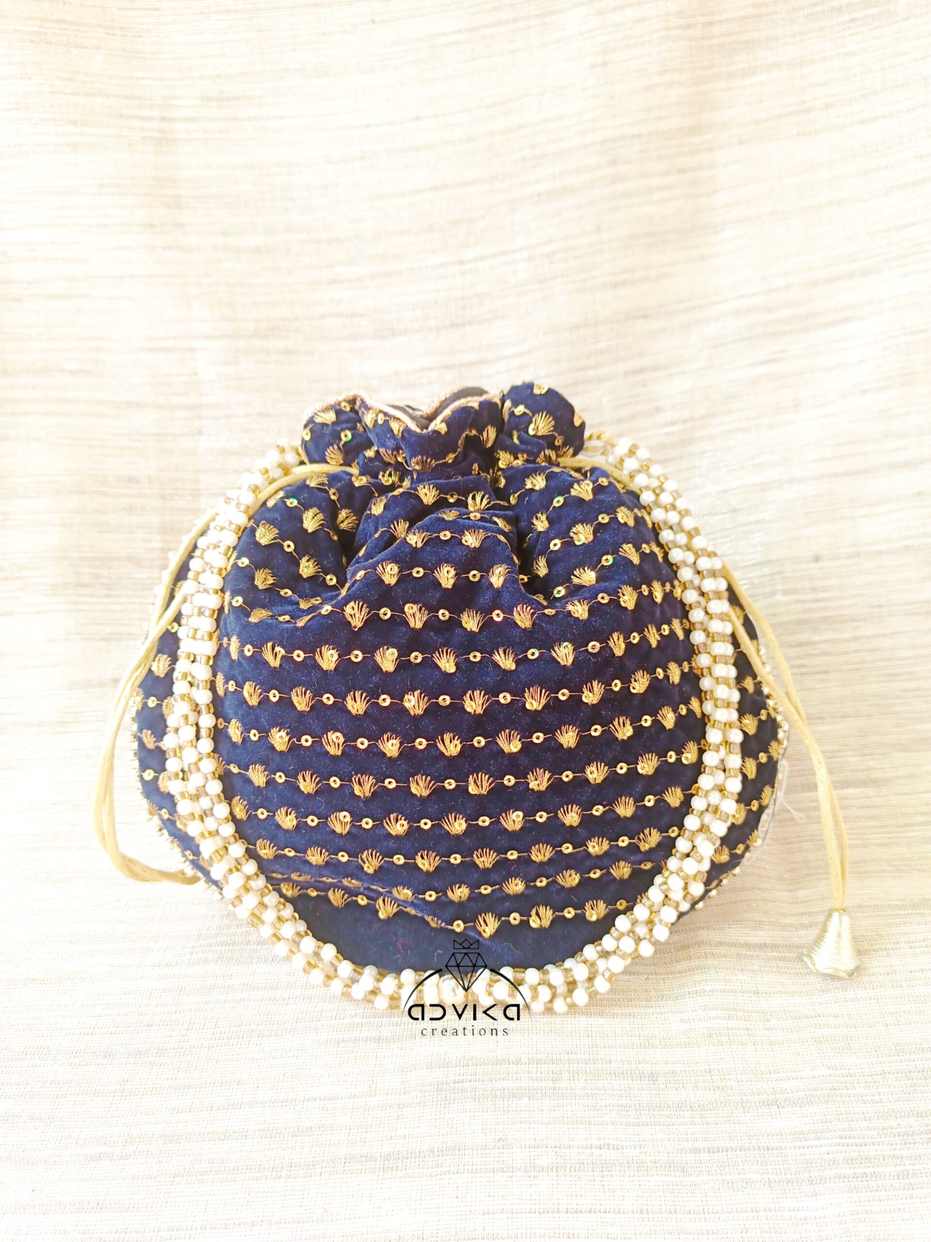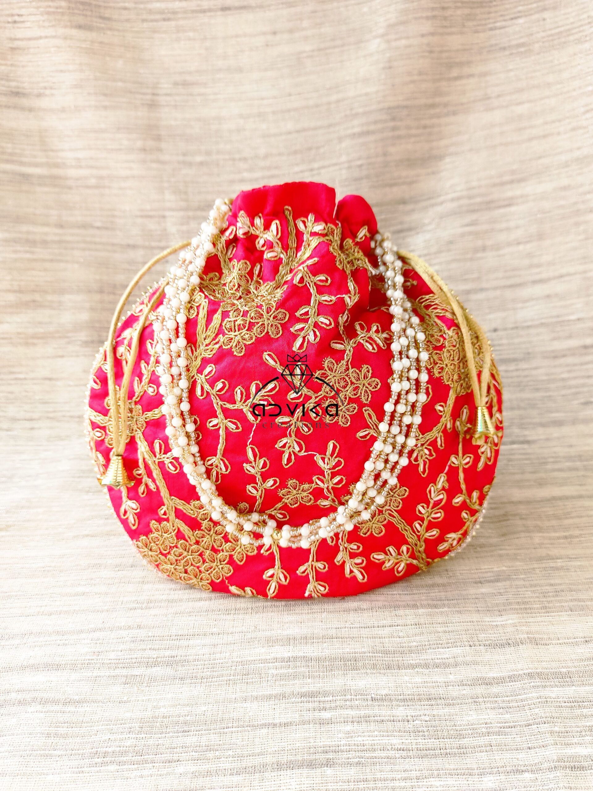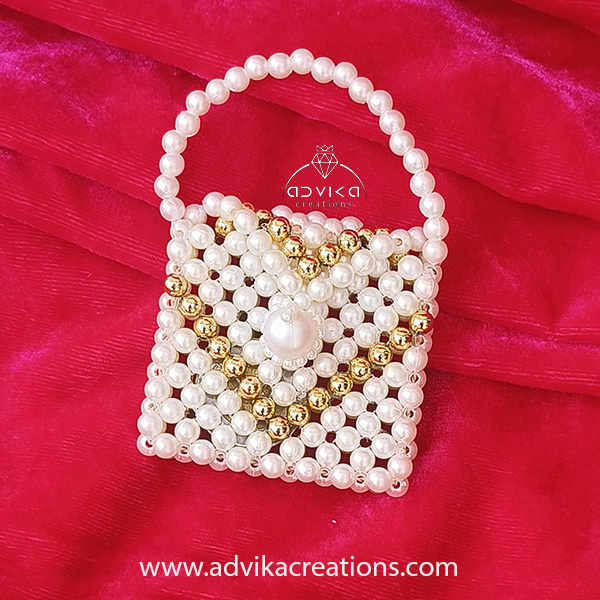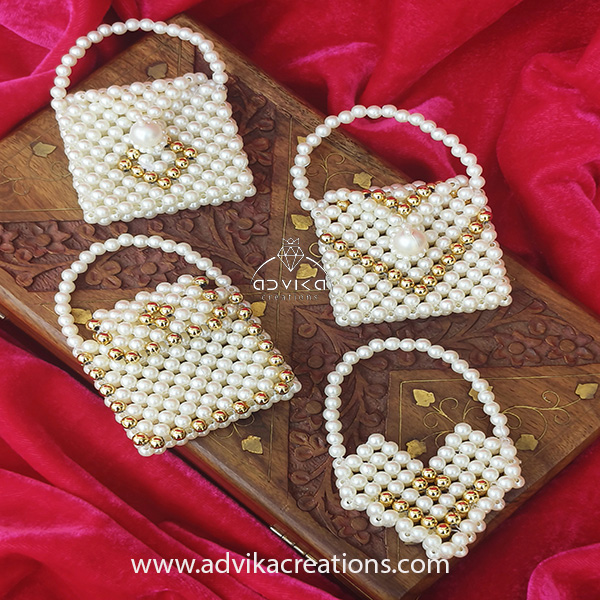 Combo set of 4 Golden-Accented White Pearl Beaded Pouch