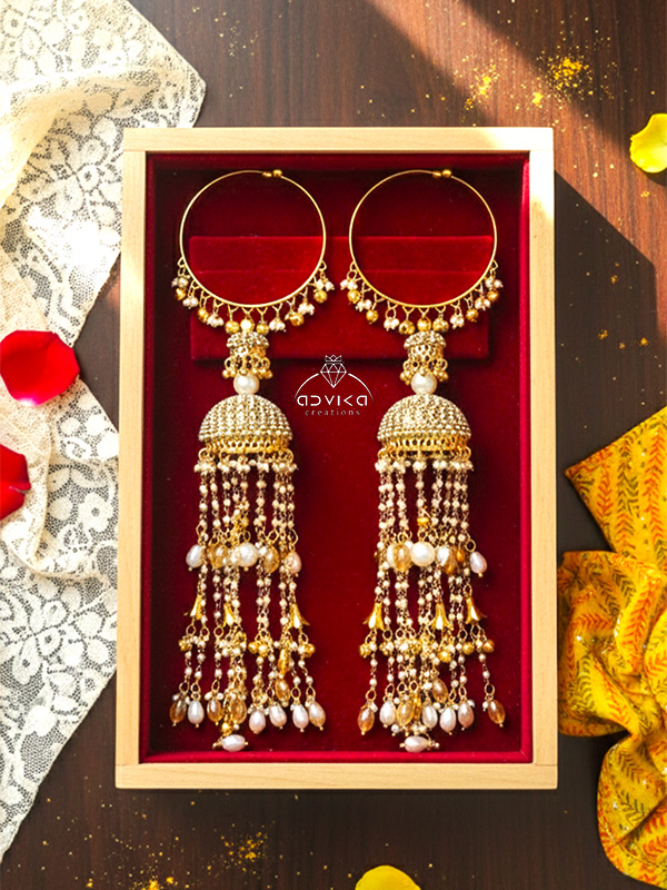Golden Jhumki Kaleere With Pearls
