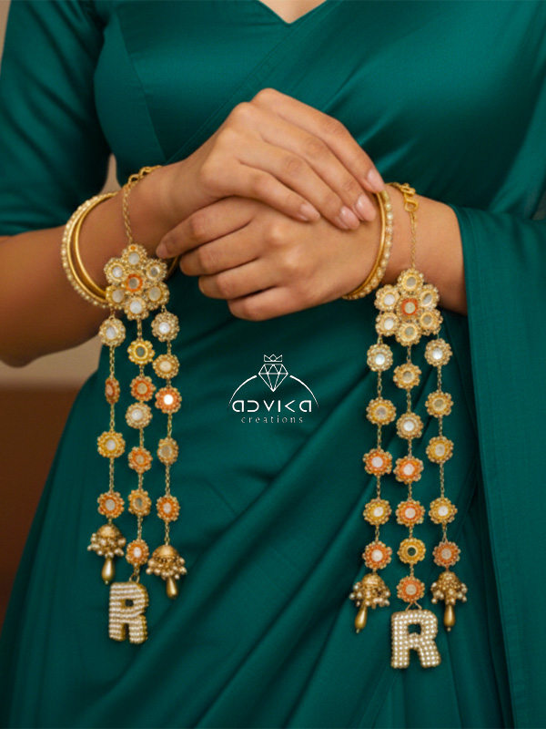 Personalized Mirror-Work Bridal Kaleeras with Crystal Alphabet