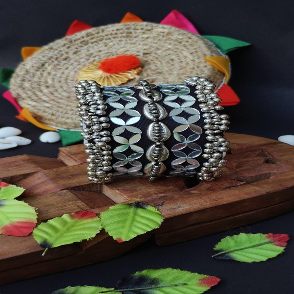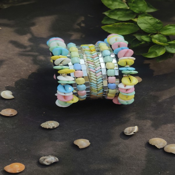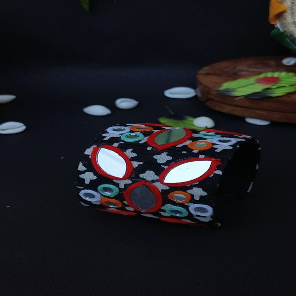 Handmade Handcuff with Metal Cowrie and Mirror Work