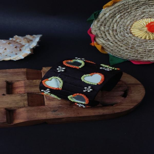 Navratri-Inspired black Handcuff with Hand Embroidery