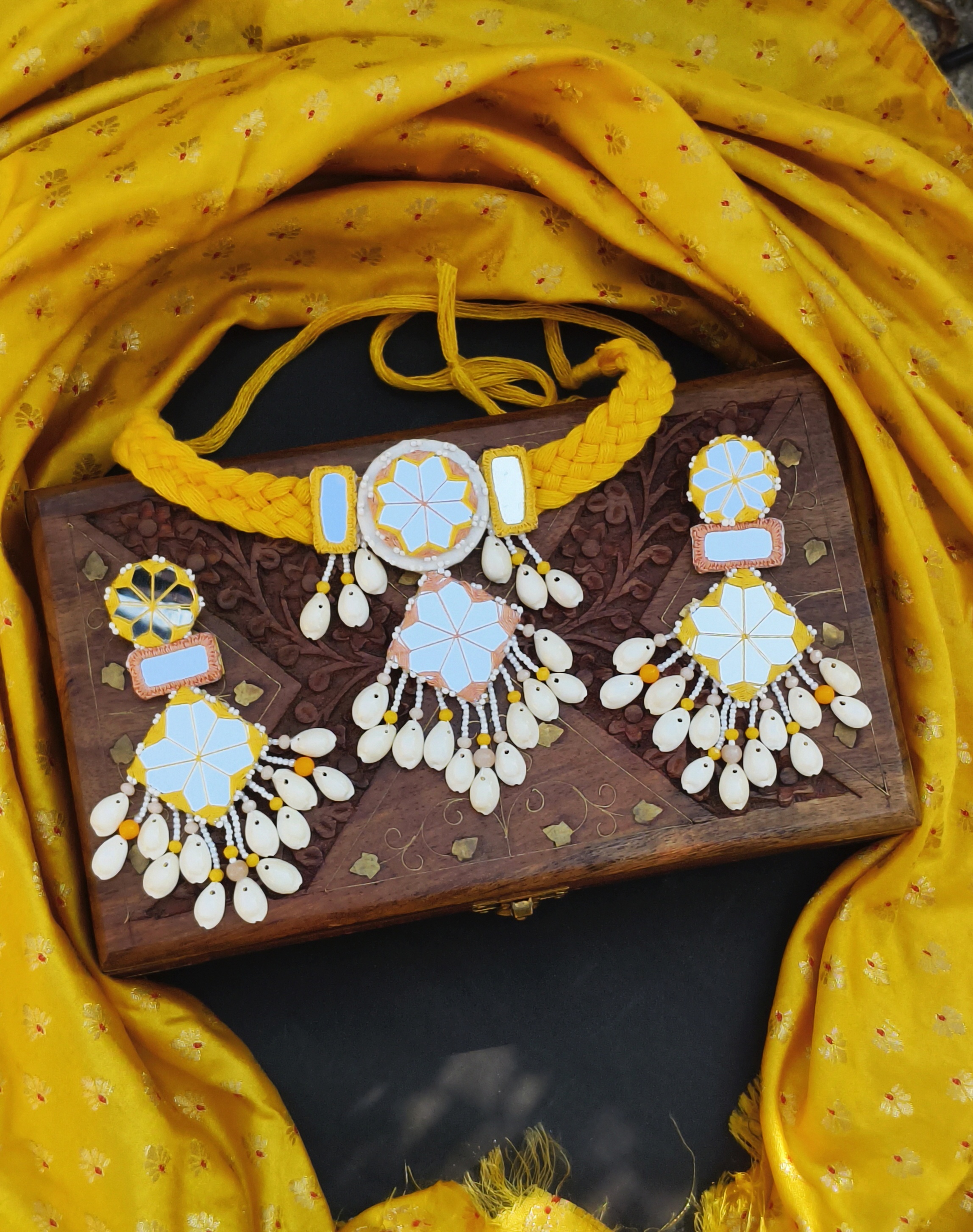 Yellow Thread Cowrie Shell Beaded Jewelry Set