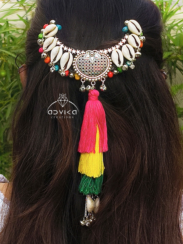 Festive hair accessories with cowrie shells and hanging women and girls