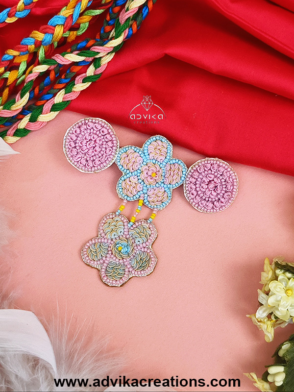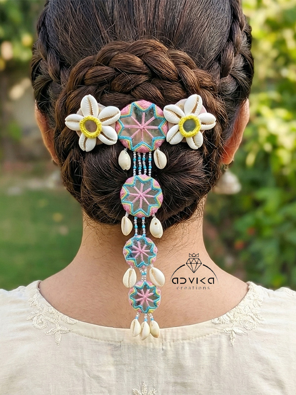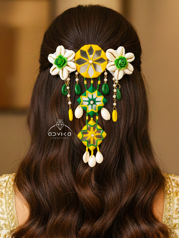 Mirror and Flower Work Hair Clip for Haldi and Mehndi Occasion