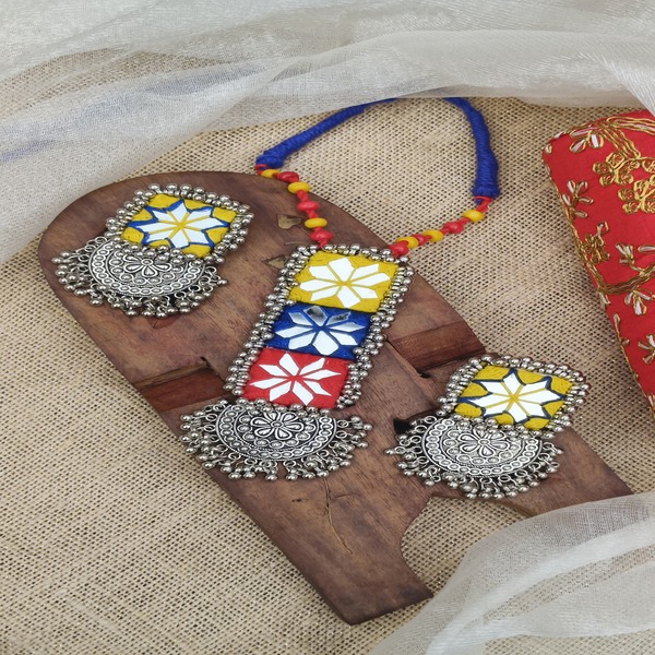 Geometric Design Multi Colour Mirror charms Handicraft Jewellery Set