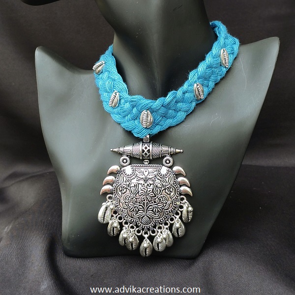Multicolor Oxidised Hasuli Necklace with Matching Cotton Thread Bangle Set