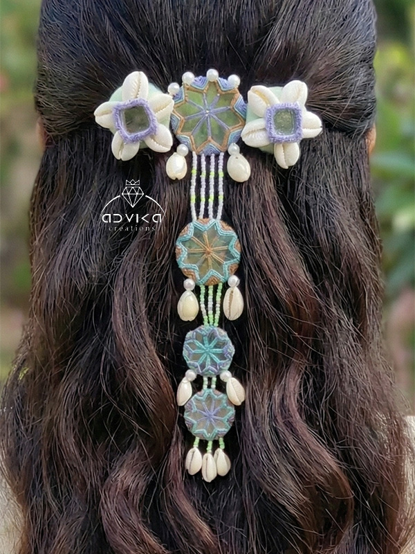 Radiant Reflections Mirror Work Hair Clip for women and girls