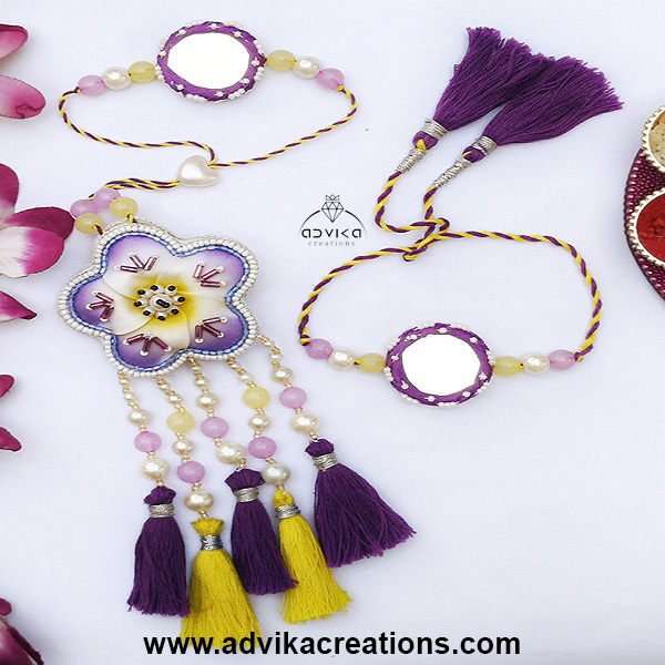 Elegant Purple flower Bhai Bhabhi Rakhi Set