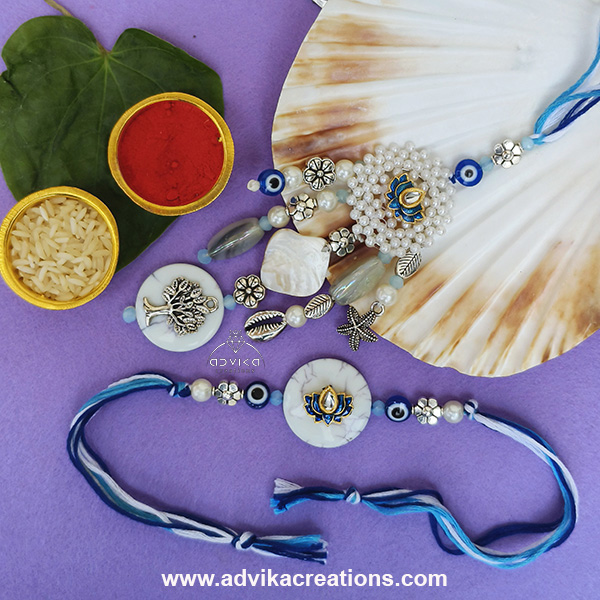 Sky Blue & Blue Evil Eye Rakhi Set