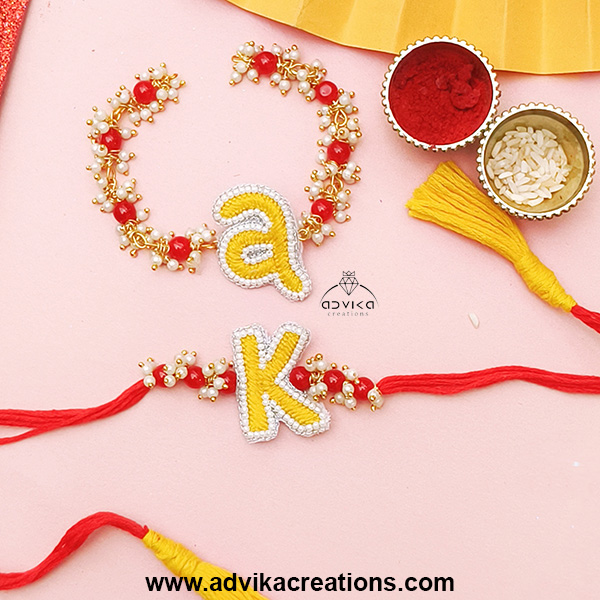 Customised Alphabet Bhai Bhabhi Rakhi Set
