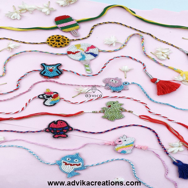 Combo Set of 10 Cartoon Beaded Rakhi for Kids