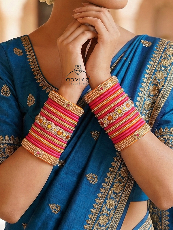 Elegant bridal pink silk bangles set