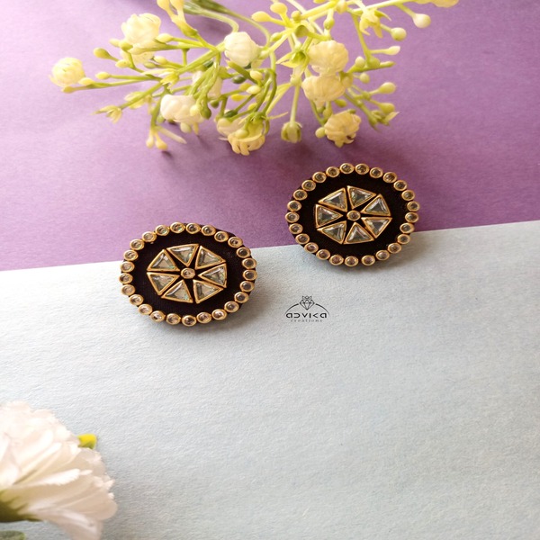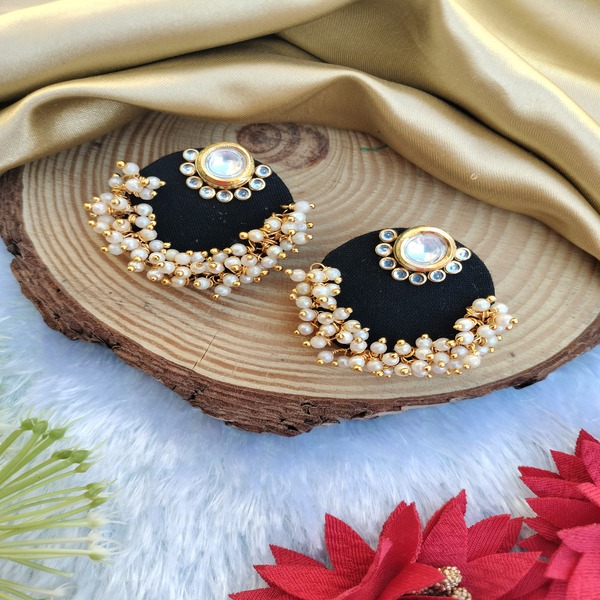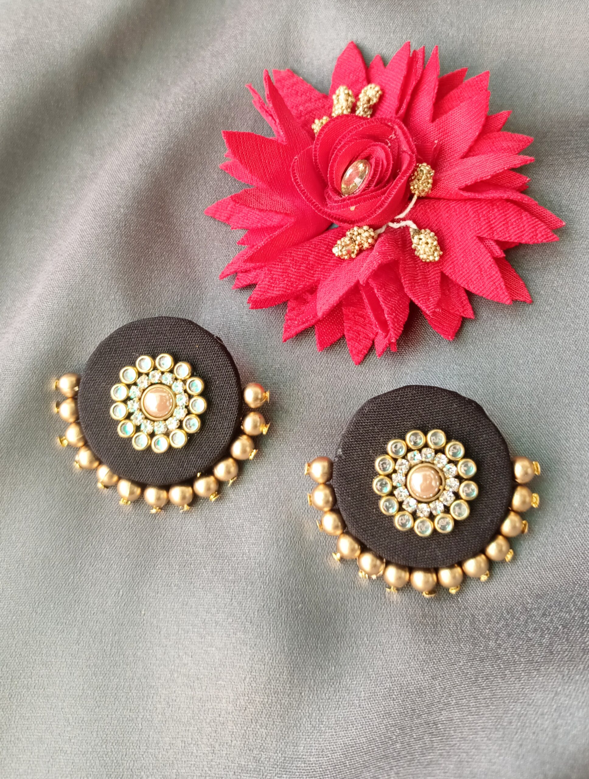 Baby Pink Fabric Earrings with Kundan, Jhumki & Loreals