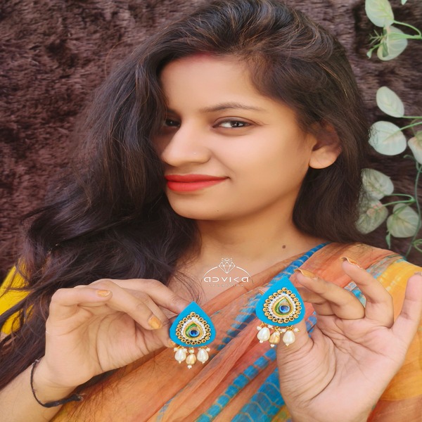 Yellow purple fabric handcrafted Antique Golden Charms Earring for Women and girls