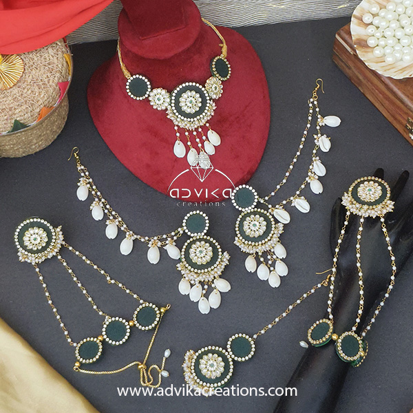 Black color Blissful Kundan, Pearls & Charms Fabric Jewelry