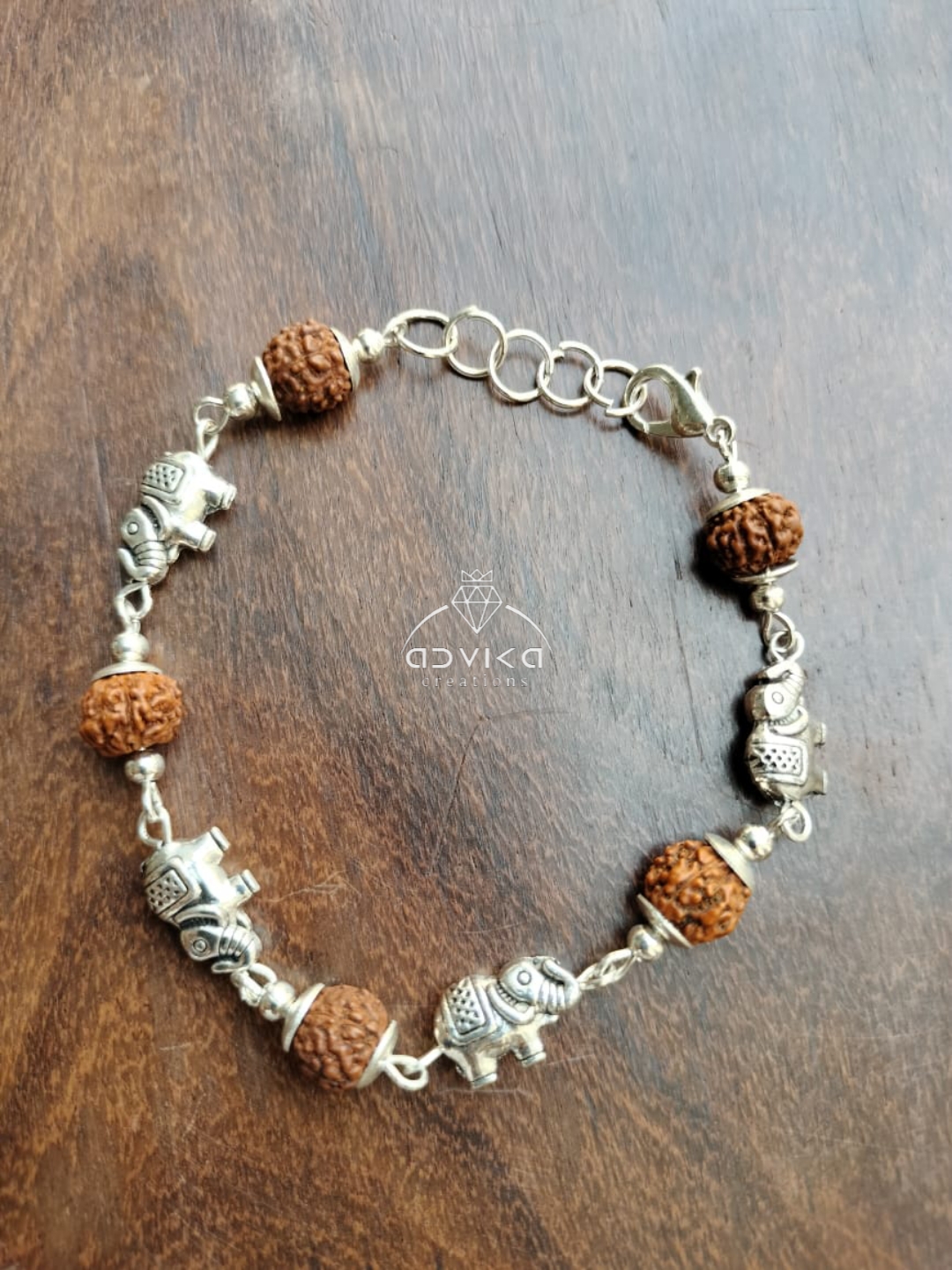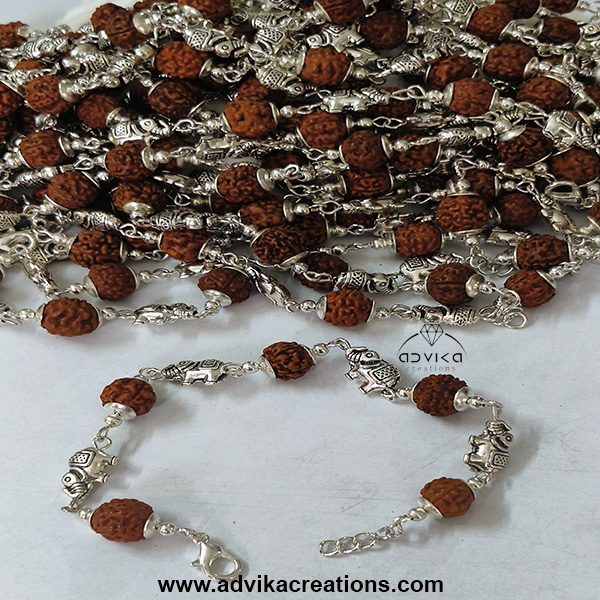 Decorated with: Silver-tone elephant charm and original Rudraksha beads