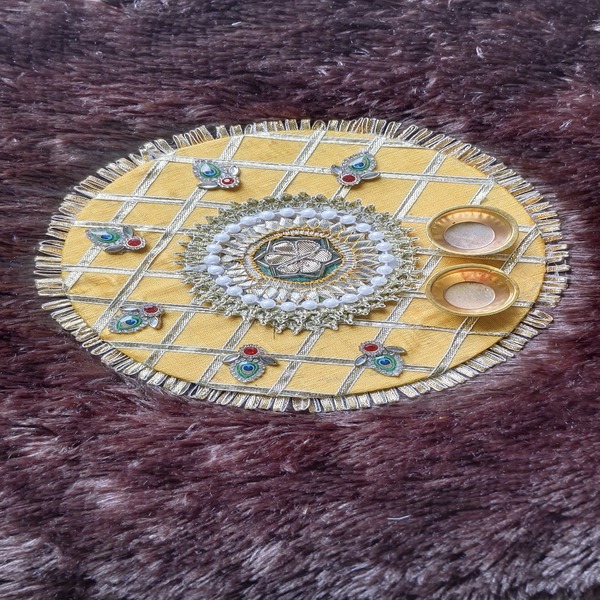 Bring the essence of festivity to your Rakhi celebrations with this handmade decorative plate. Ideal for Puja or Rakhi, it features a dedicated space for the tika stick and other ceremonial items, adding a touch of devotion to your celebrations.