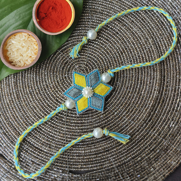 Star Motif: The centerpiece of the Rakhi features a finely embroidered star design, symbolizing guidance, strength, and protection.