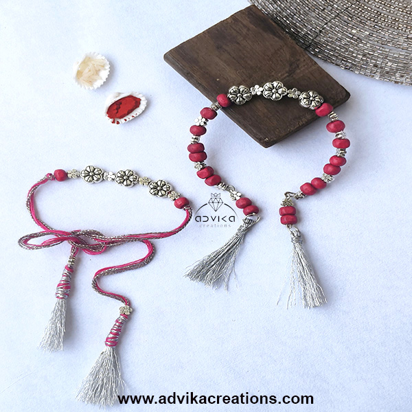Bhaiya-Bhabhi Rakhi Set: Includes 1 rakhi for brother and 1 lumba rakhi for sister-in-law