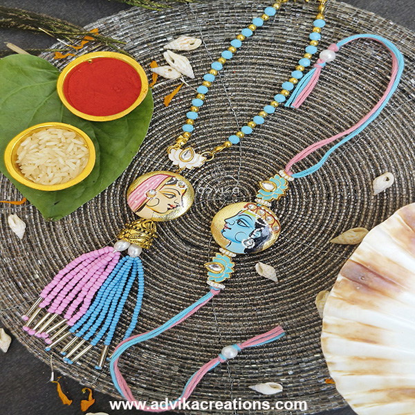 Decorated with Divine Radha-Krishna Motif Charms: Represents love, devotion, and blessings